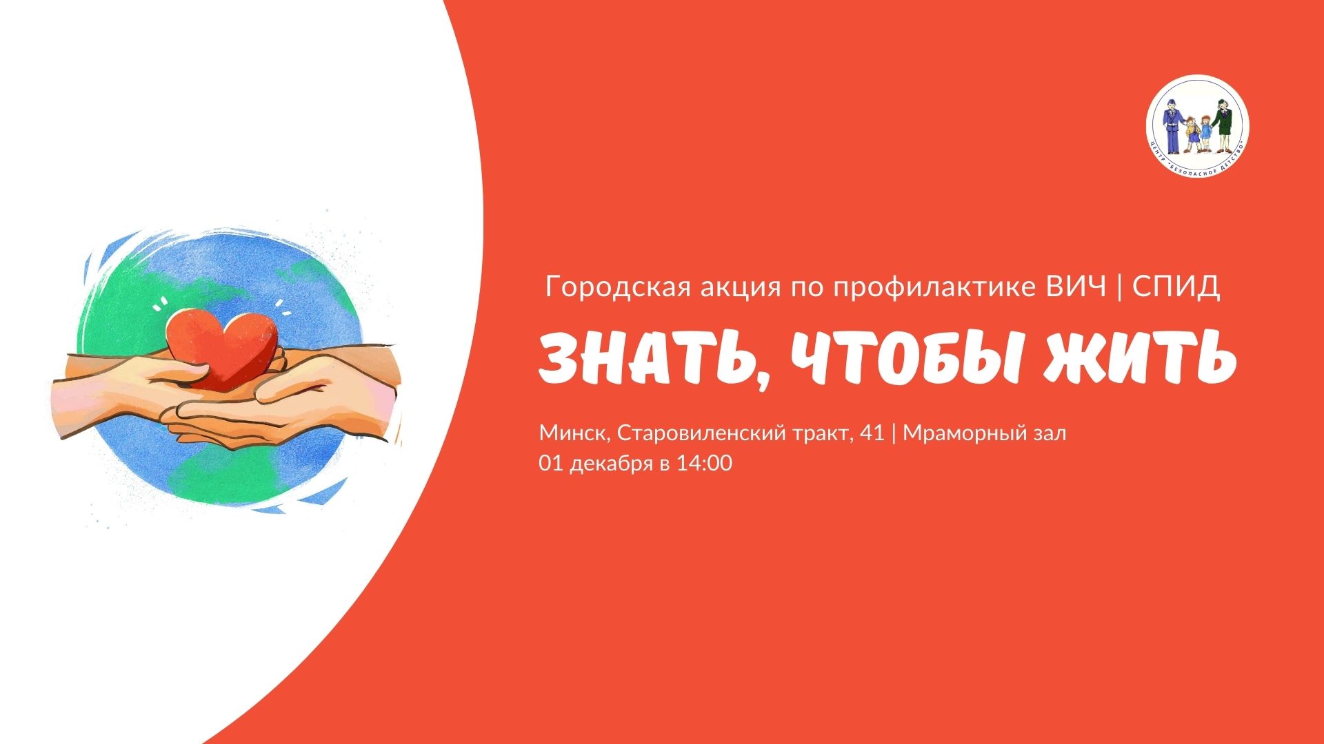 1 декабря 2025 года в 14:00 в Мраморном зале Минского государственного дворца детей и молодежи состоится торжественная церемония награждения победителей и призеров городских конкурсов, в рамках городской акции по профилактике ВИЧ/СПИД «Знать, чтобы жить», приуроченной ко Всемирному дню борьбы со СПИДом.